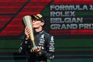 George Russell after winning the 2024 Belgian Grand Prix