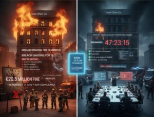 A major hotel chain received a €20.5 million fine, not solely because of a large-scale data breach, but due to serious notification failures. Investigators found that attackers had remained undetected for over 18 months, and once the breach was discovered, the organization delayed notifying the supervisory authority by an additional 74 days